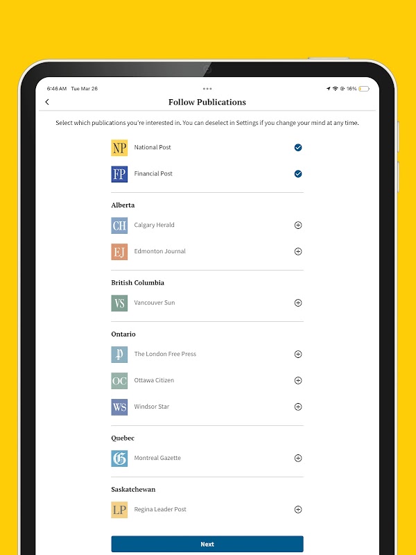 Aplikacja National Post zapewnia dostęp do wiadomości, o których musisz wiedzieć. Utwórz swój własny kanał, aby nie przegapić najnowszych publikacji swoich ulubionych autorów.