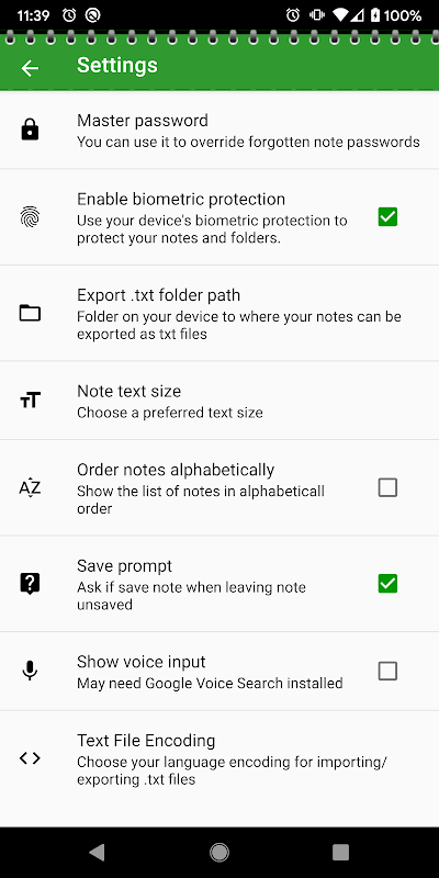- dodano opcjonalną biometryczną ochronę odcisków palców zamiast ochrony hasłem notatek i folderów