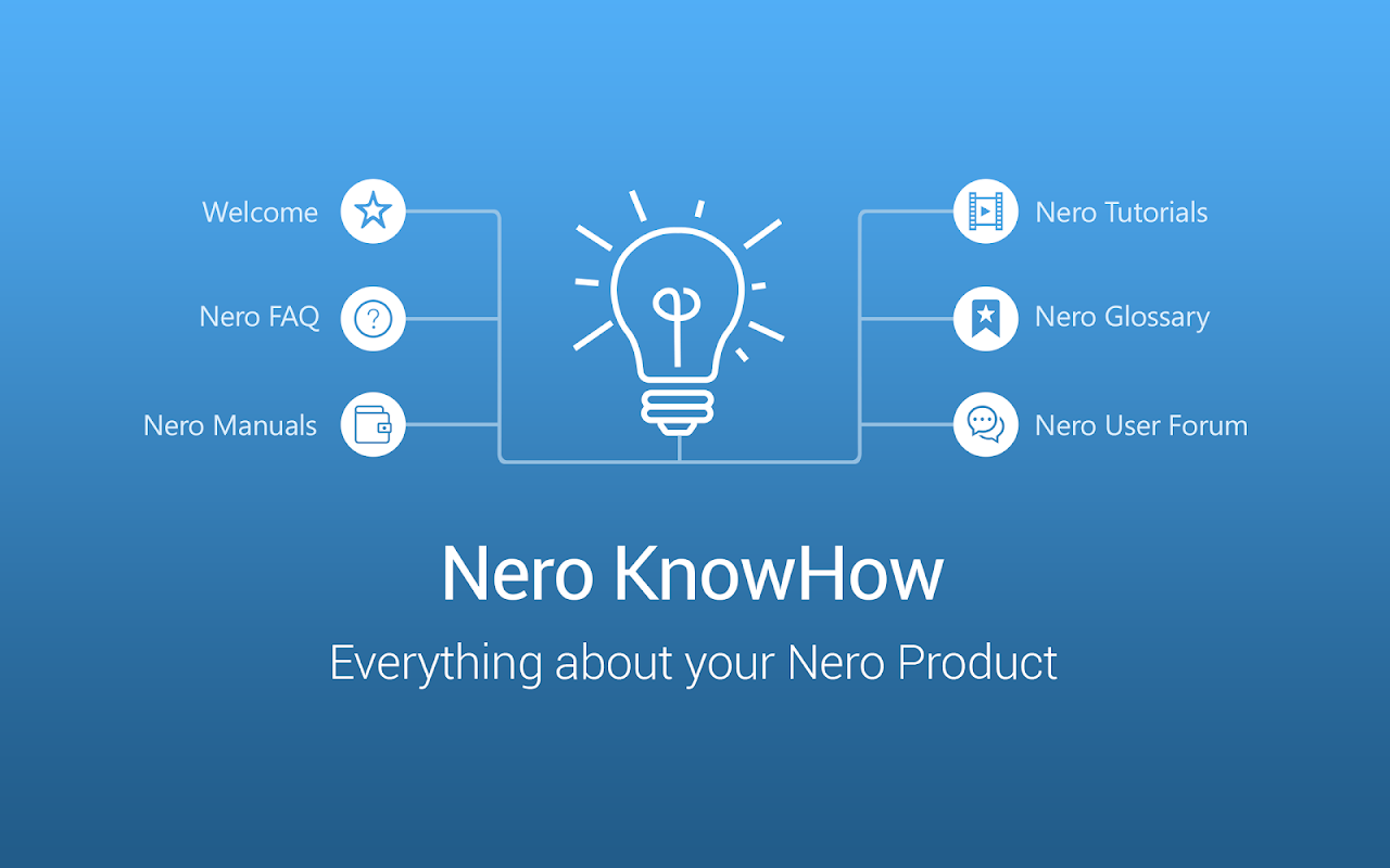 Stworzona przez twórców produktów Nero aplikacja Nero KnowHow służy Ci pomocą, oferując odpowiedzi na często zadawane pytania, porady i sztuczki, specjalnie przygotowane instruktaże wideo, instrukcje obsługi aplikacji, rozległy glosariusz, dostęp do forum użytkowników Nero i wiele więcej.