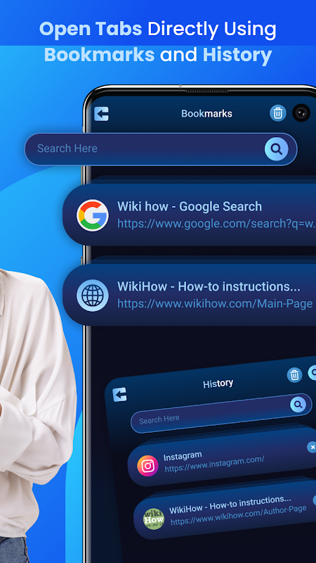 W przeglądarce internetowej odblokuj zawartość za pomocą prywatnej przeglądarki internetowej. W ten sposób możesz przeszukiwać dowolną stronę przeglądarki internetowej i aplikacje, a także dodawać ważną przeglądarkę internetową i aplikację do zakładek, abyś mógł ją łatwo znaleźć. W tym miejscu możesz także zobaczyć swoją historię wyszukiwania. Możesz także wyczyścić historię wyszukiwania.