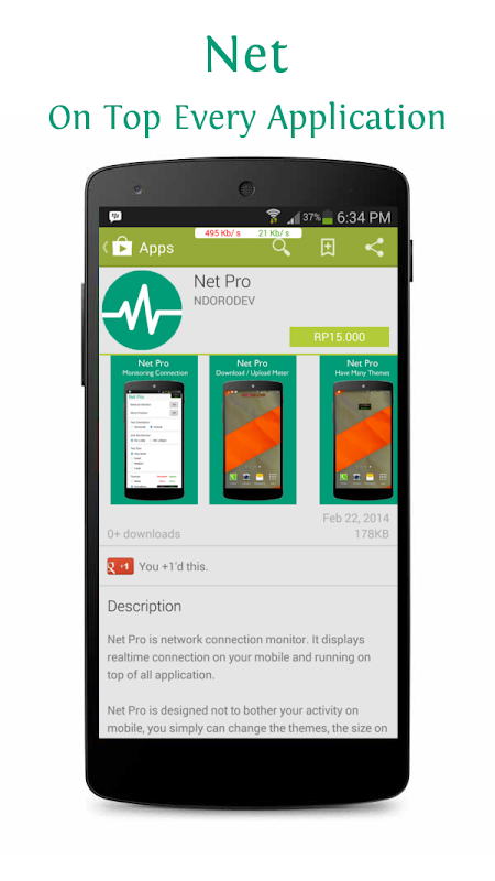 Net is app to monitor network connection. It displays realtime connection on your mobile and running on top of all application.