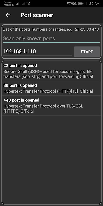 Aplikacja wyszuka wszystkie hosty w Twojej sieci domowej lub w wybranym zakresie IP. Można go wykorzystać nie tylko do poznania, kto korzysta z Twojego WiFi i dowiedzieć się więcej o każdym urządzeniu, ale także do zadań profesjonalnych: dynamiczne skanowanie portów i możliwość filtrowania hostów po otwartych portach pozwala znaleźć serwer potrzebnej usługi w wybranej sieci. Skaner IP obsługuje 4 tryby skanowania - odczyt arp, icmp ping, udp ping, żądanie dns. Możesz również ręcznie wybrać używany serwer dns do skanowania sieci prywatnych. To tylko niewielka część możliwości tego skanera sieciowego.