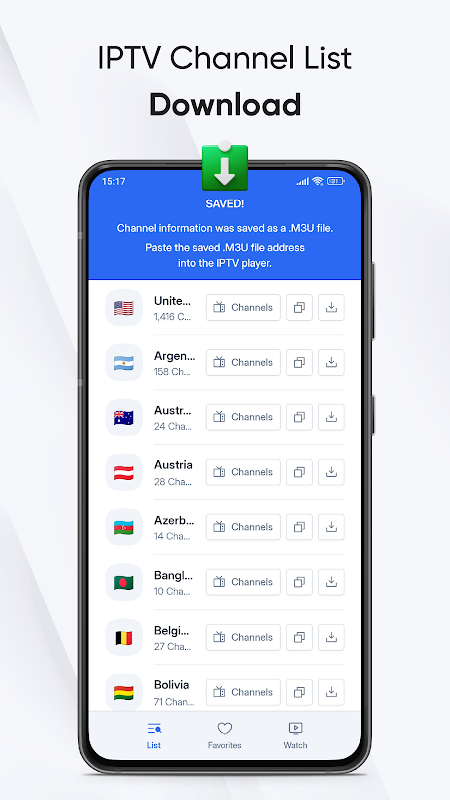 Możesz także skopiować wszystkie kanały telewizyjne z kraju w formie listy z rozszerzeniem .M3U lub pobrać je na swój telefon.
