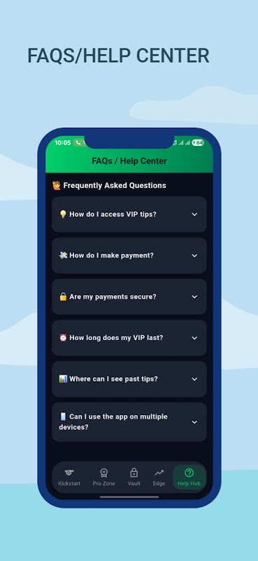 Szybki dostęp do często zadawanych pytań, wskazówek dotyczących korzystania z aplikacji i informacji o regulaminie.