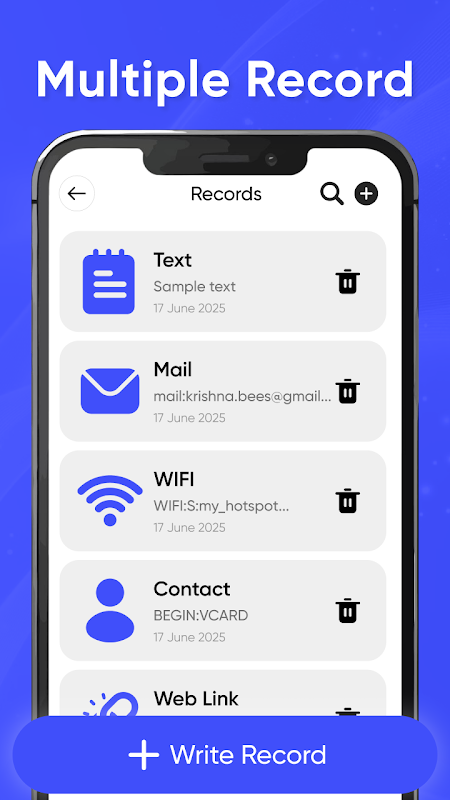 Zmień swój smartfon w potężne narzędzie NFC dzięki czytnikowi kart NFC i tagom NFC. Ta aplikacja umożliwia natychmiastowy odczyt, zapis i zarządzanie tagami i kartami NFC z łatwością. Niezależnie od tego, czy chcesz przechowywać ważne informacje, udostępniać dane uwierzytelniające Wi-Fi, tworzyć cyfrowe wizytówki, czy programować zadania automatyzacji, ta aplikacja sprawia, że technologia NFC jest prosta i dostępna.