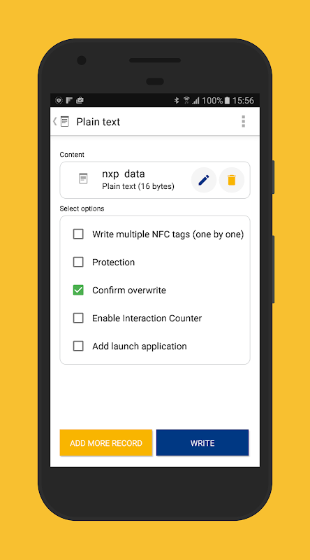 Oprócz tworzenia i przechowywania danych NFC ustawia NFC TagWriter przez NXP pozwala również na automatyczne uruchomienie aplikacji na podstawie danych odczytanych z tagów NFC i przedmiotów zawierających technologię NFC elektroniki.