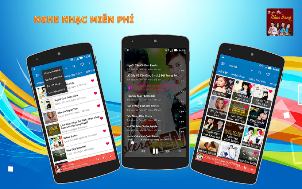 - Ứng dụng nghe nhạc vàng với giao diện đơn giản dễ sử dụng, kho nhạc Bolero khổng lồ với hàng chục nghìn bài hát nhạc vàng, nhạc trữ tình, nhạc liên khúc bolero, remix, nhạc video nhiều thể loại... sẽ làm hài lòng các bạn.