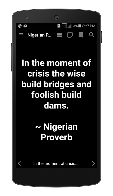 This app contains a list of Nigerian proverbs. Have a read and pluck out some ancestral insight from the motherland to carry with you today.
