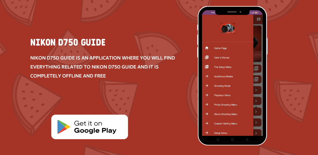 Przewodnik po aplikacji Nikon D750 zawierający informacje dotyczące aparatu Nikon D750