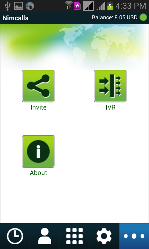 • Nimcalls jest oparte na protokole SIP soft telefonu. Możesz zadzwonić do znajomych i rodziny z Nimcalls z najniższych stawek za połączenia międzynarodowe! I bardzo dobrej jakości.