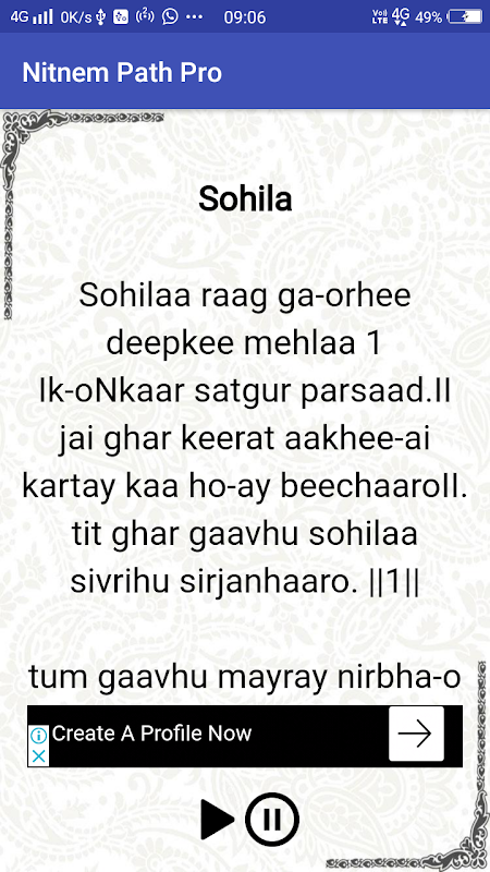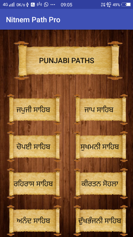 Opcje Langauge: „Nitnem Hindi”, „Nitnem Punjabi” (Gurmukhi), Nitnem Gutka English