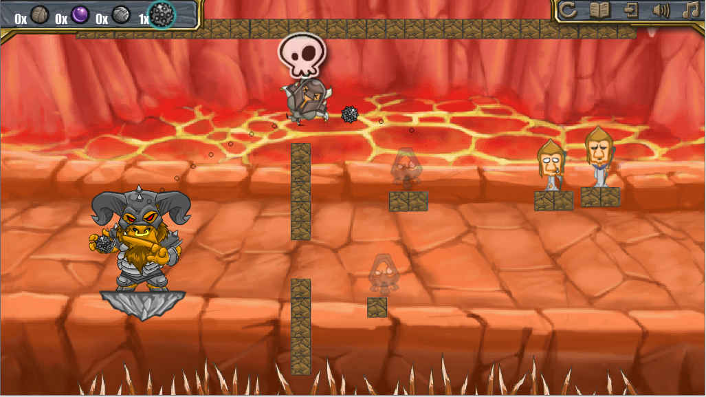 Protect your treasure from warriors, archers, priests, and other heroes. Throw wood, rubber, and steel balls to make the heroes touch spikes.