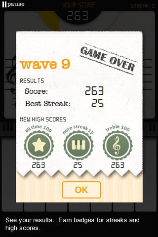 Odejdź od technik zapamiętywania na pamięć i naucz się czytać nuty w naturalny i wciągający sposób. Note Trainer to zabawna gra, która uczy rozpoznawać nuty poprzez ćwiczenie czytania z nut. Gra Note Trainer z czasem zwiększa swoją szybkość i poziom trudności, dzięki czemu możesz naprawdę nauczyć się czytać nuty bez wysiłku. Wykazano, że praktyka czytania z nut jest bardzo skuteczna w pomaganiu ludziom w nauce czytania nut. W rzeczywistości 86% nauczycieli gry na fortepianie uważa czytanie a vista za bardzo ważną umiejętność.