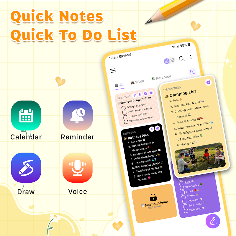 Download the ultimate notes: notepad, to do list app now. Start organizing life!
