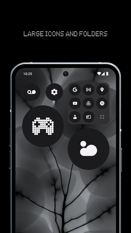 Poznaj Androida w połączeniu z kultowym językiem projektowania Nothing. Unikalne funkcje obejmują Max Icons i Max Folders, a także niestandardowe widżety Nothing.