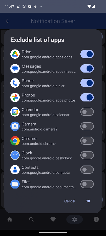 - Lista aplikacji do wykluczenia: wybierz aplikacje, dla których nie chcesz zapisywać powiadomień.