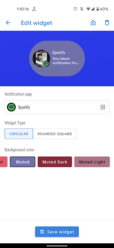 Tworzy widżety powiadomień o odcieniach tapety (podobne do Androida 12).