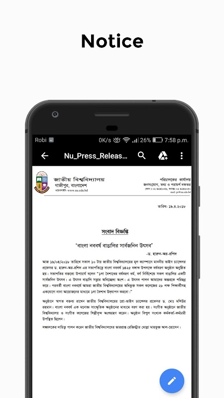 If you are a student of National University, this app will help you to check notice online. No need to browse on the web,