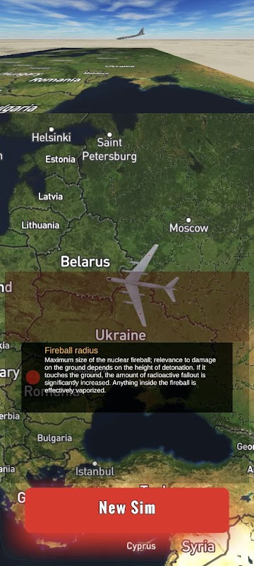 Wybierz broń jądrową z arsenału listy krajów, takich jak Stany Zjednoczone, Federacja Rosyjska, Chiny, Wielka Brytania, Francja, Indie, Pakistan, Izrael i Korea Północna i symuluj ją na trójwymiarowej mapie świata rzeczywistego, aby zobaczyć efekty za pomocą efektów wizualnych i graficznych. Istnieje prawie cała broń jądrowa z wymienionych krajów z dokładną mocą (kilotony) i dodatkowymi informacjami, takimi jak liczba i rok produkcji. Ponadto, aby uzyskać informacje statystyczne na temat katastrofalnych skutków broni jądrowej w danej lokalizacji za pomocą zniszczenia i liczby osób dotkniętych przez nią,
