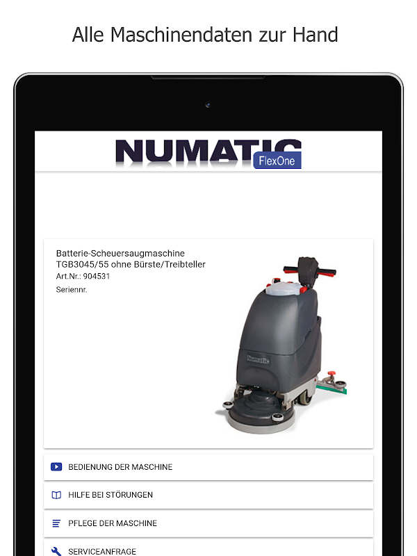 Za kod QR lub nawet szybciej przez NFC uznania wiórów wszystkie dane maszynowe są nazywane w NUMATIC FlexOne
