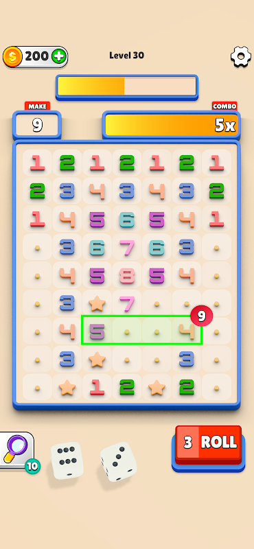 Doświadcz wyzwania każdego poziomu, rzucając kostką, wybierając liczby i zamiatając siatkę z precyzją.