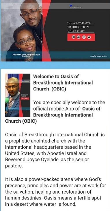 Oasis of Breakthrough International Church is a prophetic anointed church with the international headquarters based in the United States, with Apostle Israel and Reverend Joyce Oyelade, as the senior pastors.