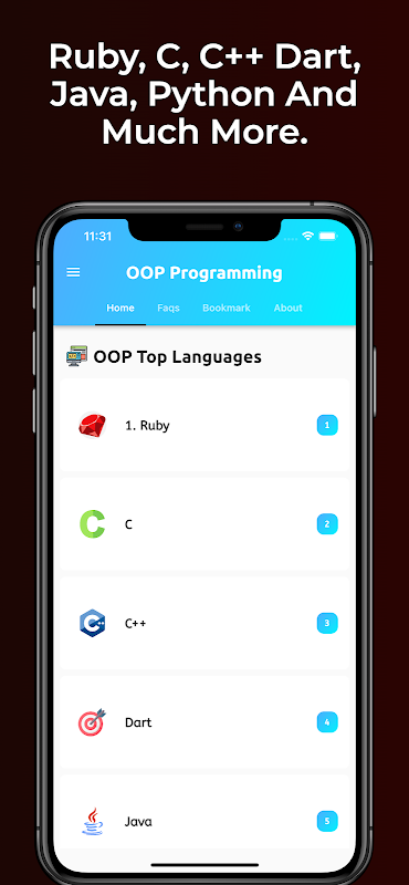 W tej aplikacji udostępnimy bezpłatne języki programowania OOP, dzięki którym możesz nauczyć się podstaw OOP, aby rozwinąć lub poprawić swoje umiejętności programowania obiektowego.