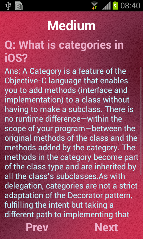 Objective-c main language for developing IOS applications. Whether you need to prepare for an upcoming job interview or just want to brush up on your programming knowledge in Objective C, this app will be helpful. This app contains 4 categories such as basic level,medium level,advance level and web services questions and answers about many aspects of mobile developing such as Objective C, iOS Frameworks, Threads, Patterns, OOP, Memory Management, Exception Handling, Preprocessed,web services etc.and will get the random questions.