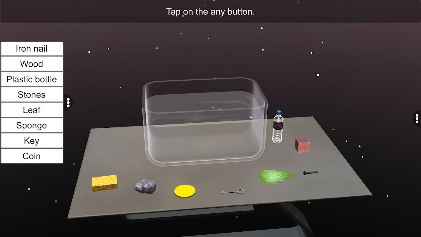 - Tap and Pinch Zoom - zoom into and identify about objects float or sink in water.