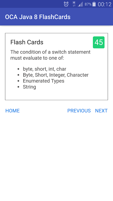 Aplikacja zawiera fiszek aby przygotować się do egzaminu Java 8 1Z0-808.