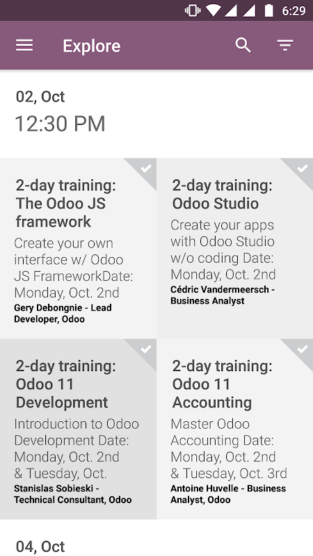 Informacje Odoo Experience 2017 APK