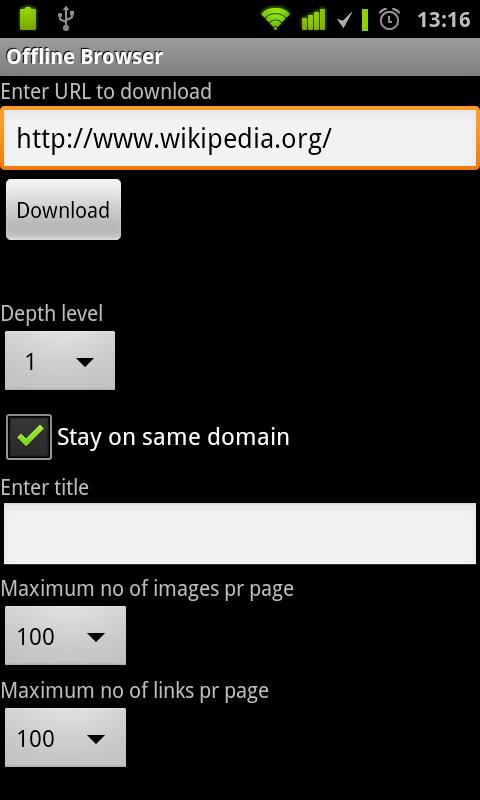 Pobierz stron internetowych na kartę SD i przeglądać je w trybie offline.