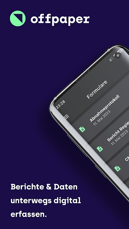 Pożegnaj się z długopisem i papierem. Dzięki Offpaper raporty, dzienniki, listy kontrolne i inna dokumentacja mogą być łatwo przechwytywane w ruchu przez pracowników, którzy pracują poza biurem. Duża liczba modułów treści umożliwia zbudowanie odpowiedniego formularza dla każdego wymagania.