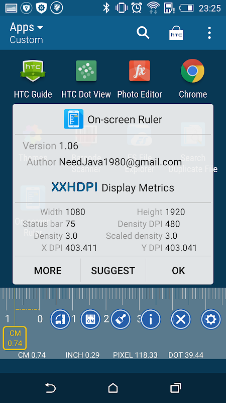 Android 6.0, Settings - Apps - Configure apps (Settings Icon at the Upper-Right corner) - Draw over other apps - This app (On-screen Ruler) - Permit drawing over other apps