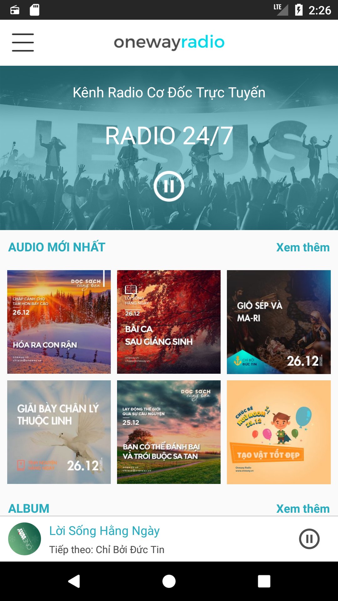 Oneway là ứng dụng nghe radio 24/7 và đọc tin tức cơ đốc hoàn toàn miễn phí của Mục vụ truyền thông cơ đốc Việt Nam, Oneway Media.