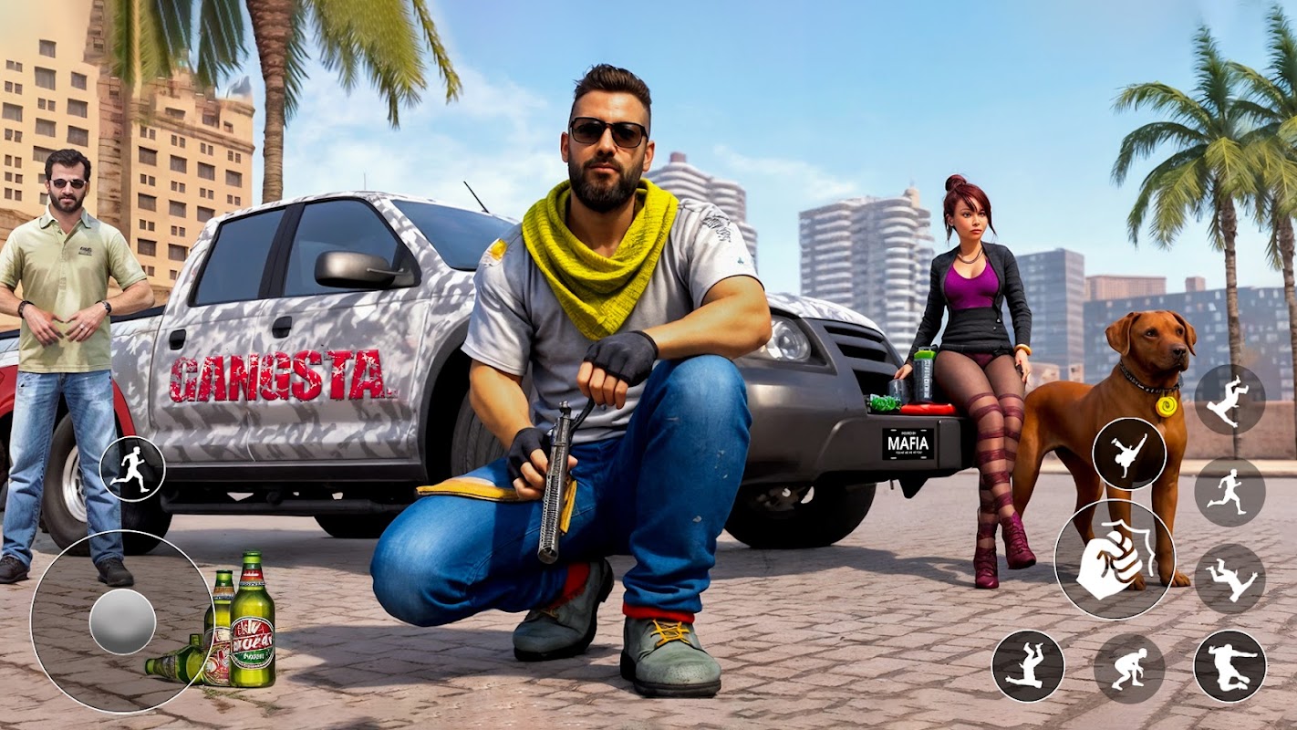Ta gra gangsterska z otwartym światem oferuje oszałamiającą grafikę HD i realistyczny projekt miasta przestępczego. Od ruchliwych dróg miejskich po misje w wioskach terenowych, każde otoczenie jest niesamowite. Mocna muzyka w tle, realistyczne odgłosy broni i płynne animacje dodają akcji jeszcze większej intensywności. Kluby, walki gangów i obszary planowania mafii tworzą pełne gangsterskie doświadczenie. Niezależnie od tego, czy walczysz z rywalizującymi gangami, uciekasz przed policją, czy wykonujesz zadania związane z napadami, ta gra mafijna z otwartym światem zachowuje naturalną i ekscytującą akcję. To idealne połączenie akcji, symulacji przestępczości i gangsterskiej przygody dla fanów gier gangsterskich offline i gier typu Crime City.