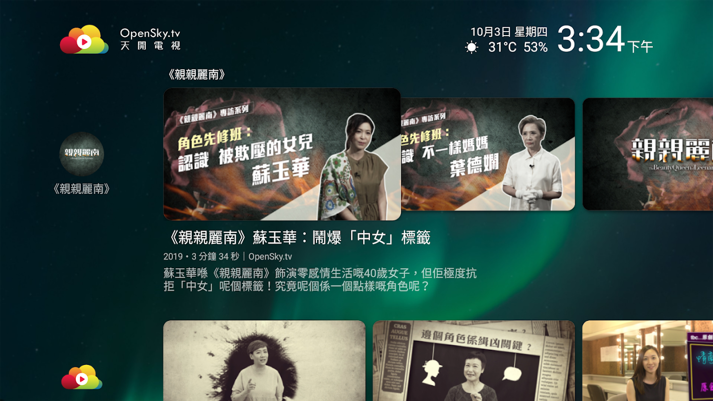 鎖定OpenSky精選娛樂影視頻道,只要輕鬆一按,演唱會、頒獎典禮,甚至體育賽事均能一覽無遺,滿足熱愛歌、影作品的您。