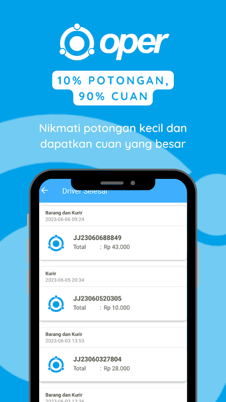 Jesteśmy bardzo zaniepokojeni dobrem naszych partnerów-kierowców. Oper pobiera tylko 10% kosztów utrzymania aplikacji, podczas gdy 90% przychodów trafia bezpośrednio do Twojej kieszeni. Naszym celem jest zapewnienie kierowcom maksymalnych korzyści. Dzięki Oper nie tylko odnosisz korzyści finansowe, ale także klienci są zadowoleni, ponieważ otrzymują tańsze ceny w porównaniu z innymi aplikacjami.