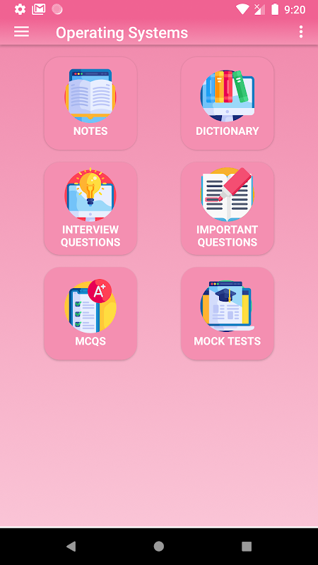Aplikacja systemu operacyjnego zawiera krótkie, łatwe i rzeczowe notatki dotyczące systemu operacyjnego, pytania wielokrotnych pytań dotyczących systemu operacyjnego z quizami, niestandardowe testy próbne, słownik systemu operacyjnego i ważne pytania na rozmowę kwalifikacyjną.