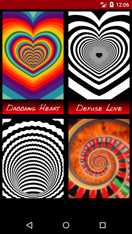 Optical Illusions images hypnotise you and change the perception of reality.Experience real optical hallucinations that will change your perception of reality. Notice how the objects around you stretch or shrink with the different optical illusions available or dive into a trip that will test your resistance to hypnotus. Install Optical Illusions application on your own risk.