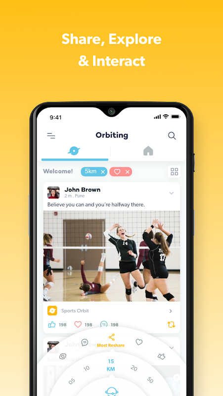 Instead of cluttering your feed with random content trending in any part of the world, Orbiting allows you to share and explore content in interest-based Orbits at the radius-proximity of your choice.