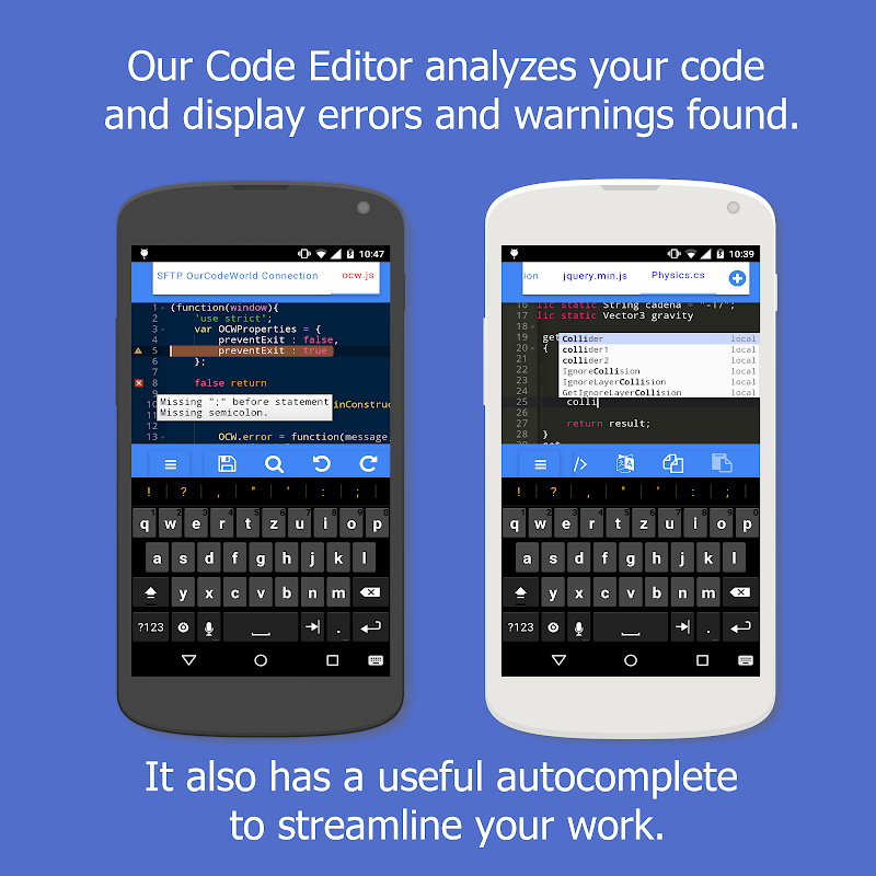 An integrated development environment (IDE),text editor, code editor for Android.