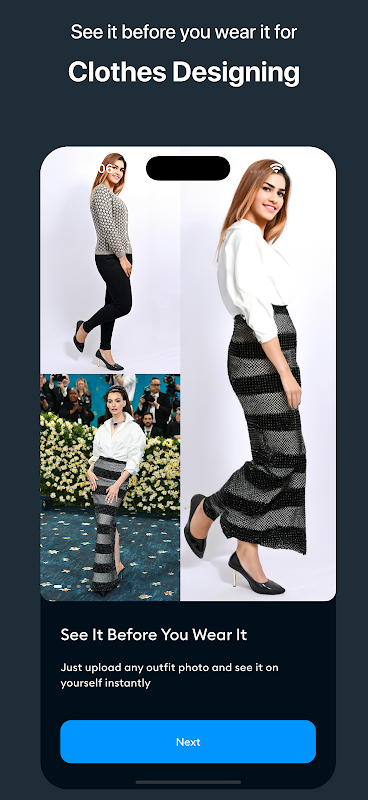 Pobierz teraz AI Clothes Changer — najszybszy kreator strojów, najbardziej zorganizowany planer strojów i najbardziej realistyczny wirtualny silnik przymierzania na Androida. Projektuj ubrania, remiksuj style i przymierzaj ubrania, aż każde będzie idealne — dzięki Twojemu osobistemu projektantowi ubrań AI.