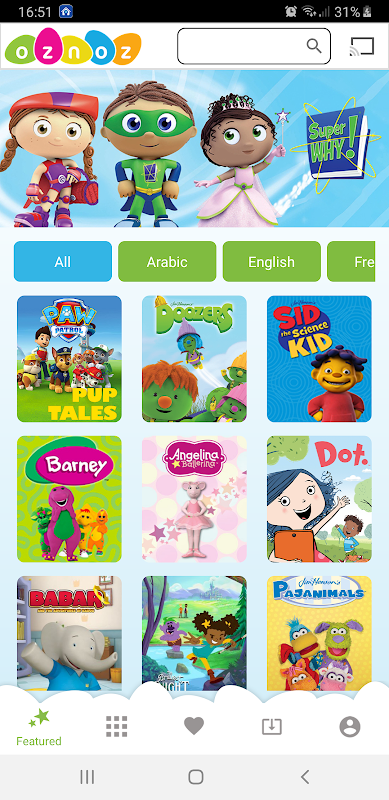Oznoz zawiera tysiące filmów z całego świata w języku angielskim, francuskim, hiszpańskim, niemieckim, arabskim, chińskim mandaryńskim, perskim i koreańskim, które zanurzą Twoje dziecko w nowym języku, nauczą umiejętności społecznych i emocjonalnych oraz zapewnią godziny zabawy!