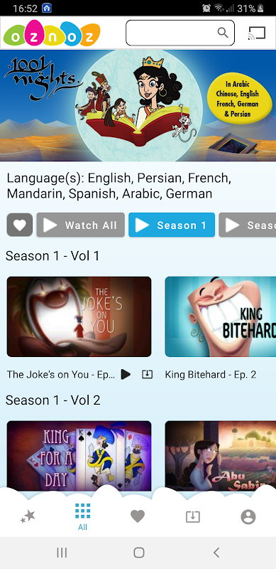 Oznoz umożliwia strumieniowe przesyłanie wideo i pobierz wspaniałe bajki w wielu językach.