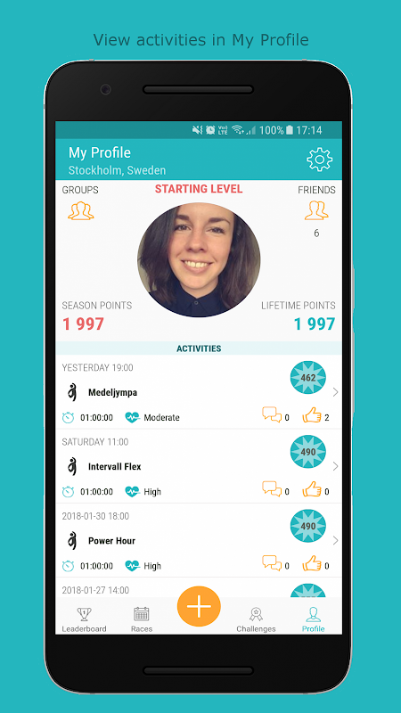 Niezależnie od tego, czy logujesz się przez GPS, czy ręcznie, zarobisz paceUP! zwrotnica. Zdobądź punkty bazowe za każdą sesję i punkty wysiłku za każdą sekundę ciężkiej pracy. Wyścigi w zawodach rekreacyjnych dają podwójną liczbę punktów.