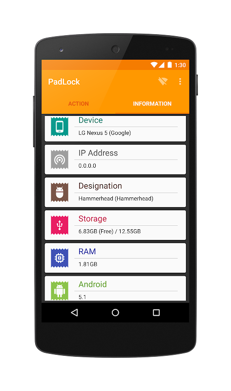 - Accèder aux informations : PadLock recense les données de votre appareil, tel que la version du BootLoader, du Build ou encore du Noyau...