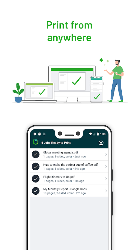 Czy drukowanie z telefonu komórkowego jest kłopotliwe? PaperCut Pocket ułatwia drukowanie ze wszystkich urządzeń, w tym komputerów stacjonarnych, laptopów, Chromebooków i oczywiście telefonu.