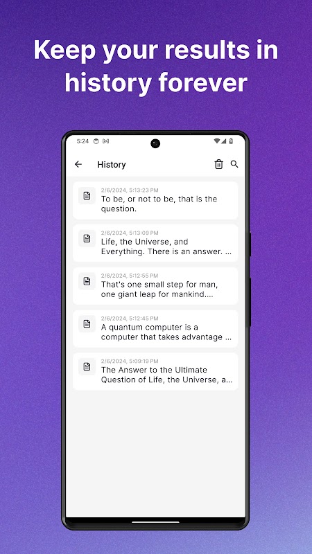 - Pełna historia: aplikacja zapisuje wszystkie Twoje sparafrazowane teksty, zapewniając łatwy dostęp do wcześniejszych prac. Dzięki temu żadna treść nie zostanie utracona, a w razie potrzeby będziesz mógł ponownie przejrzeć swoje parafrazy.