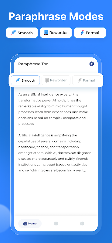 • Kliknij zakładkę (Smooth – Reworder – Formal) dla Paraphraser